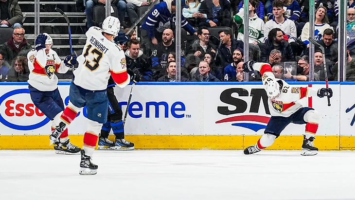 "Торонто Мэйпл Лифс"-"Флорида Пантерз" 2:3 (ОТ).Брэндон Монтур в овертайме принёс победу гостям.Сэм Райнхарт и Брэндон Монтур набрали по 2 очка (1+1),Алекс Лайон отразил 38 бросков."Пантеры" прервали серию из 4 поражений подряд.