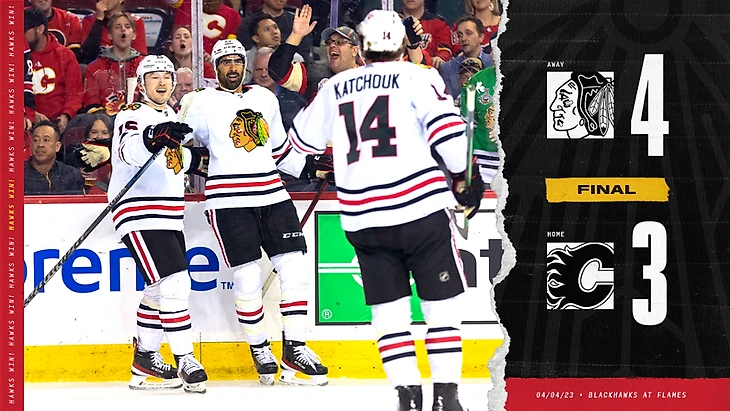 "Калгари Флэймз"-"Чикаго Блэк Хоукс" 3:4.Андреас Атанасиу забросил 2 шайбы,Лукас Райхел отдал 2 результативные передачи,Петр Мразек отразил 33 броска.У хозяев Ноа Ханифин набрал 2 очка (1+1)."Чёрные ястребы" прервали серию из 8 поражений подряд.