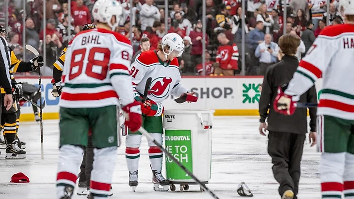 "Нью-Джерси Дэвилз"-"Питтсбург Пингвинз" 5:1.Доусон Мерсер забросил 3 шайбы,Дуги Хэмилтон набрал 2 очка (1+1),Нико Хишир отдал 2 результативные передачи,Витек Ванечек отразил 22 броска.