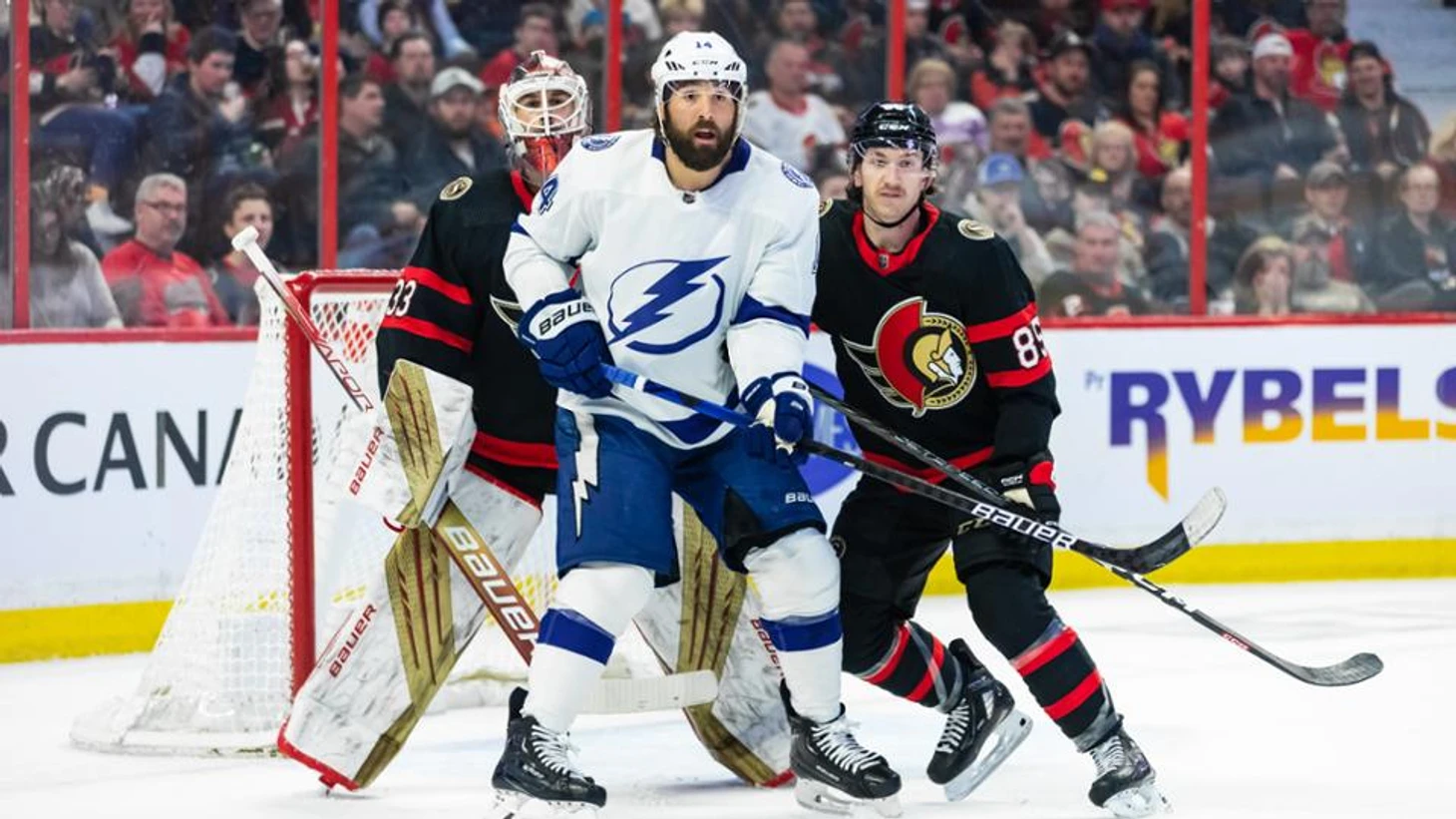"Оттава Сенаторз"-"Тампа-Бэй Лайтнинг" 7:4.Алекс ДеБринкат и Марк Кастелич набрали по 2 очка (1+1),Тим Штютцле и Джейк Сандерсон отдали по 2 результативные передачи,Егор Соколов забросил одну шайбу,Артём Зуб отдал результативную передачу,Кэм Тальбо отразил 20 бросков.У гостей Виктор Хедман набрал 3 очка (1+2),Стивен Стэмкос отдал 3 результативные передачи,Никита Кучеров отдал 2 результативные передачи."Сенаторы" прервали серию из 4 поражений подряд.