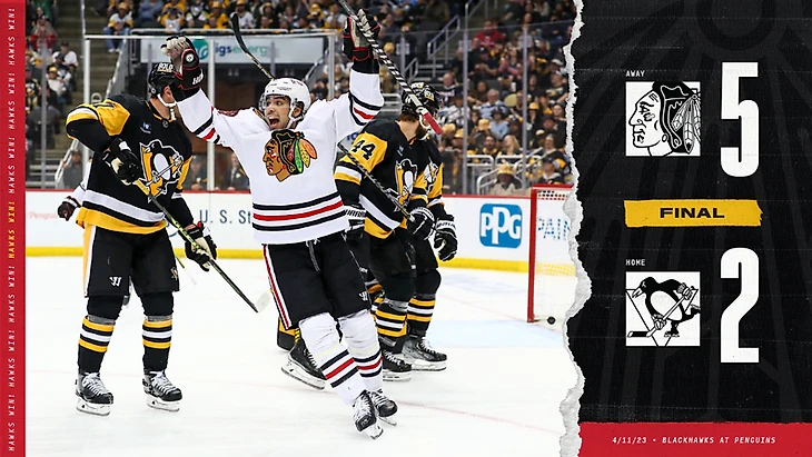 "Питтсбург Пингвинз"-"Чикаго Блэк Хукс " 2:5.Бадди Робинсон набрал 2 очка (1+1),Андерс Бьорк отдал 2 результативные передачи,Никита Зайцев отдал результативную передачу,Петр Мразек отразил 38 бросков.У хозяев Джефф Питри отдал 2 результативные передачи,Евгений Малкин забросил одну шайбу."Чёрные ястребы" прервали серию из 3 поражений подряд.