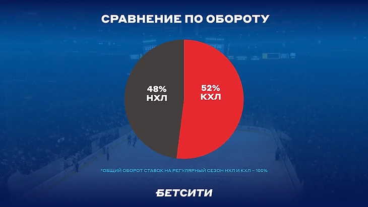 В БЕТСИТИ сравнили регулярные сезоны НБА и КХЛ по обороту ставок. Отечественный хоккей оказался более привлекательным для игроков. На КХЛ пришлось 52% ставок, а на заокеанскую лигу — 48%.