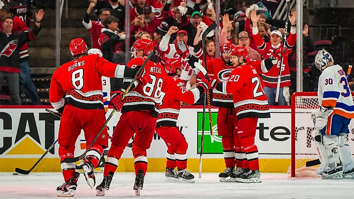 "Каролина Харрикейнз"-"Нью-Йорк Айлендерс" 2:1.Мартин Нечас и Брент Бёрнс отдали по 2 результативные передачи,Антти Раанта отразил 25 бросков."Ураганы" повели в серии 1-0.