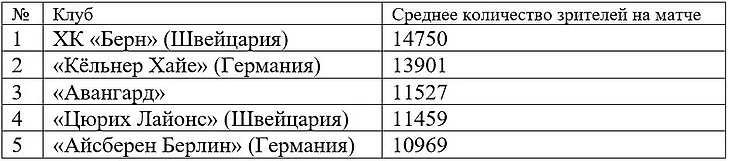 И эти цифры позволили «Авангарду» войти в топ не только в рамках КХЛ. В этом сезоне омский клуб вошёл в тройку самых посещаемых клубов на всём европейском континенте.
