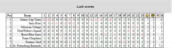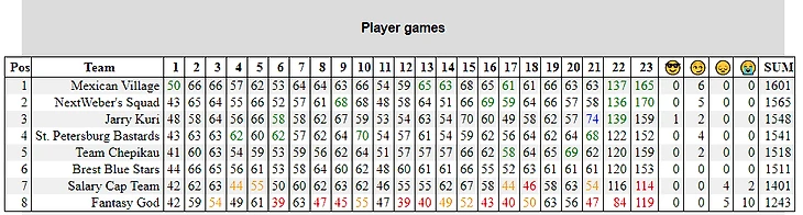 8. Salary Cap Team - Yaraslau Paliavy (7-14-0)
