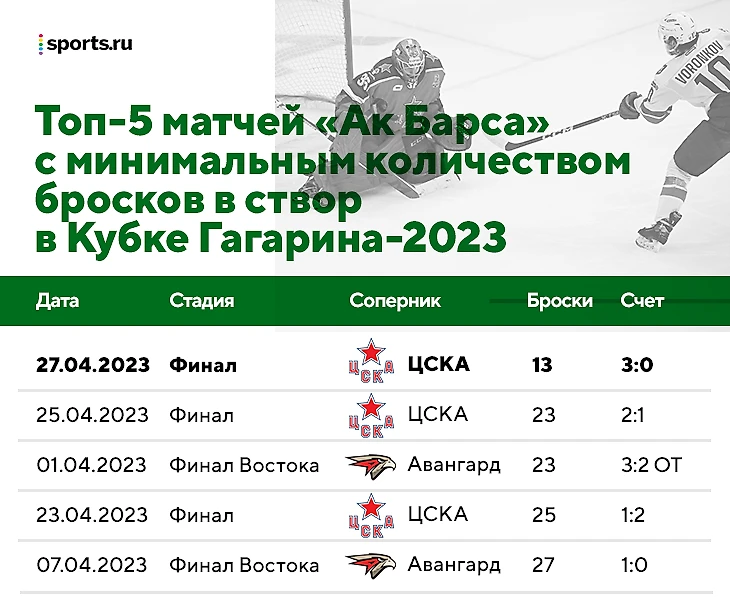 Нельзя сказать, что армейцы вышли на шестой матч на расслабоне. Во-первых, им уже и так не удалось закрыть сезон во вторник – еще одна неудача в планы не входила, а во-вторых, по стартовым минутам было понятно, насколько серьезно ЦСКА настроен закончить все здесь и сейчас. Они перебросали соперника, перехитовали, совершили больше отборов, провели больше времени в атаке на 10 минут (!), но беда была в том, что «Ак Барс» не собирается соревноваться с ними в этом. Казанцам даже не нужна была инициатива – оставьте себе, им нужен только свой момент. И они им воспользовались.