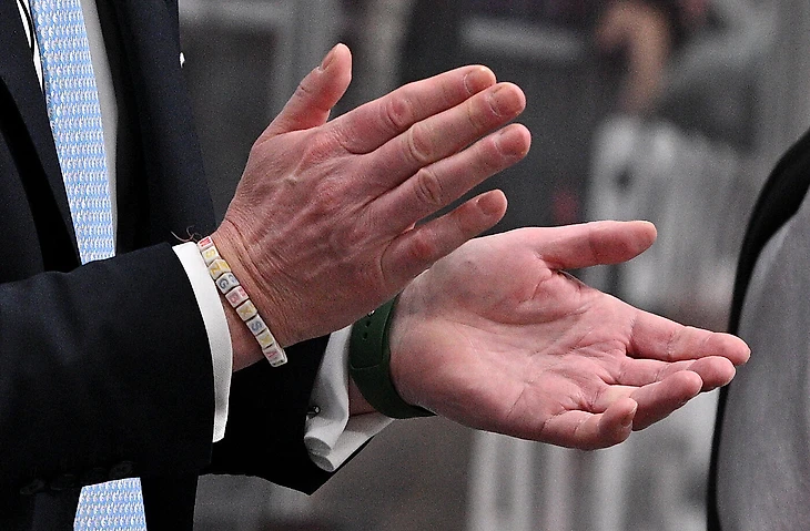 Впервые браслет можно было заметить на руке еще после первой игры плей-офф против «Северстали». В дальнейшем главный тренер ЦСКА регулярно появлялся с этим интересным аксессуаром. Но так как пресс-конференции после матчей нужны для разговоров о хоккее, мы дождались окончания финала, чтобы побольше о нем узнать.