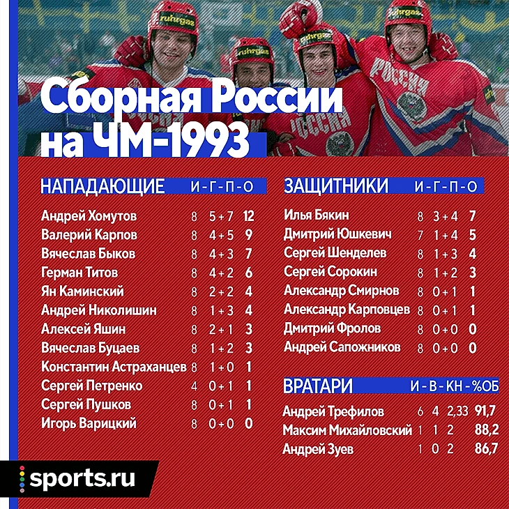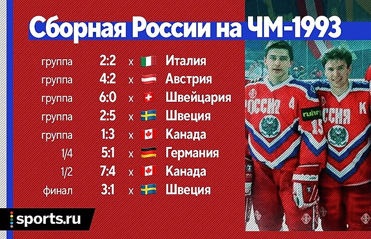 ЧМ-1993 – очень яркое воспоминание. Первая золотая медаль в истории сборной России. Говорю и аж слезы накатывают. К сожалению, после перестройки спорт, как и культура, переживал непростые времена, и следующего золота ЧМ пришлось ждать 15 лет.