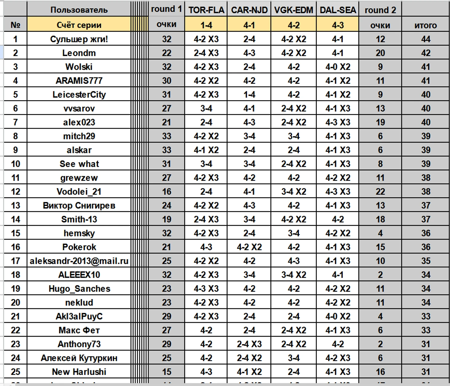 Турнир прогнозов. Stanley Cup 2023. Итоги второго раунда и прогнозы на финалы конференций