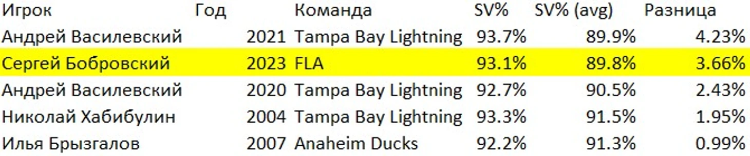 Все наши вратари, взявшие Кубок Стенли в целом отстояли лучше других вратарей в лиге. Даже Илья Брызгалов, который сыграл только 5 игр, выступил достаточно успешно
