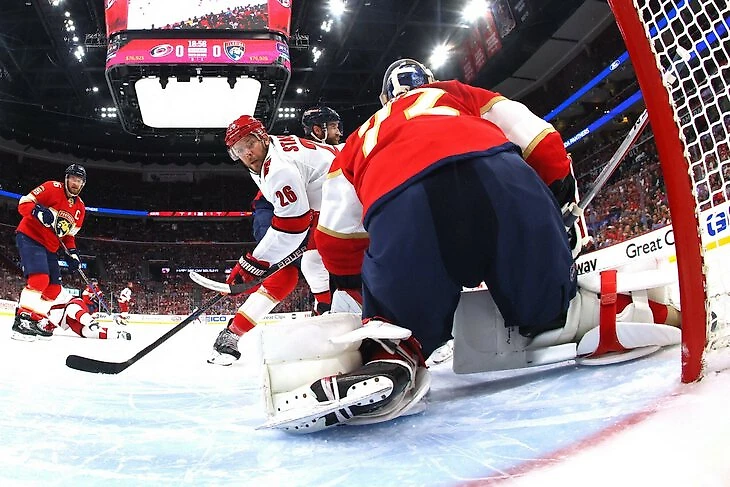 Если развивать эту мысль, то Каролина по сути играет в четыре третьих звена. Все таки Ахо без Свечникова и Теравайнена исчез. Ну, а у Флориды вообще полный порядок, ну кроме привычного хаоса в обороне, который они пока решают хорошей физикой. И еще вратарь мирового уровня, отдохнувший в регулярке и на позитиве.