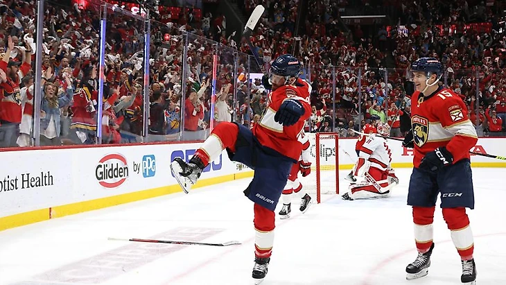 "Флорида Пантерз"-"Каролина Харрикейнз" 4:3. Мэттью Ткачук за 5 секунд до конца матча забросил победную шайбу. Мэттью Ткачук забросил 2 шайбы, Александр Барков отдал 2 результативные передачи, Сергей Бобровский отразил 36 бросков. У гостей Джордан Мартинук и Брэди Шей отдали по 2 результативные передачи. "Пантеры" выиграли серию 4:0.