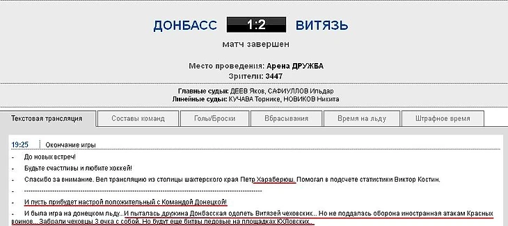 0 – количество штрафных минут чеховских хоккеистов в матче против «Донбасса». Впервые в своей кахээловской истории. Вы вообще знаете эту команду, выходящую на лед в форме «Витязя»?