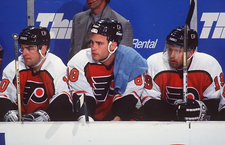 «Роковой легион». Слева направо: Джон Леклер, Эрик Линдрос, Микаэль Ренберг. Фото: Fotobank/Getty Images/Allsport/Harry Scull