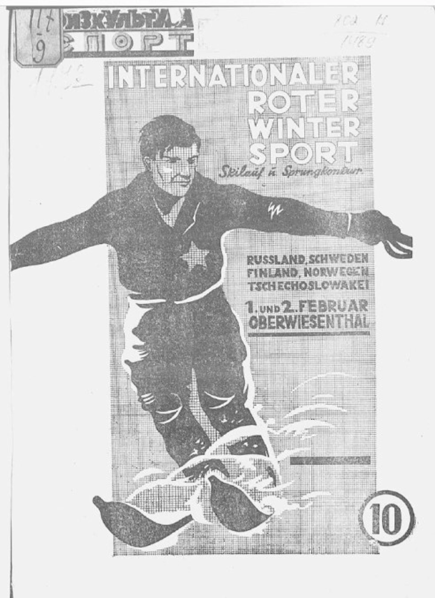 Плакат Международных зимних спортивных состязаний КСИ по лыжам 1-2 февраля 1930 года в Обервизентале (журнал «Физкультура и спорт» № 10 от 20 февраля 1930 года)