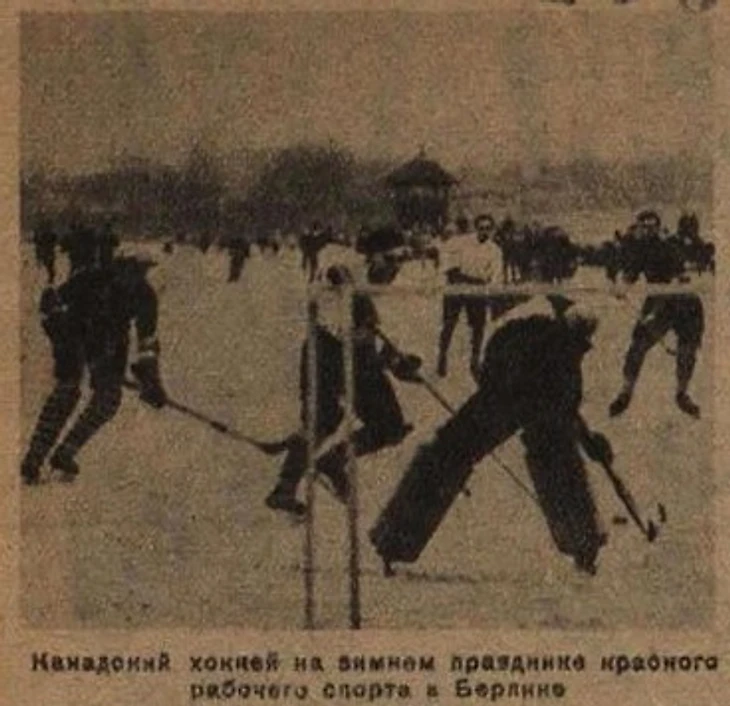 Зима 1932 года. Берлин. «Канадский хоккей на Зимнем празднике красного рабочего спорта в Берлине» (журнал «Физкультура и спорт» № 10-11 за апрель 1932 года)