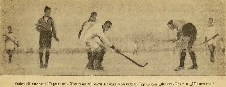 ** - хоккей среди рабочих Германии начал развиваться с 1927 года («Красный спорт» № 51-52 от 25 декабря 1927 года)