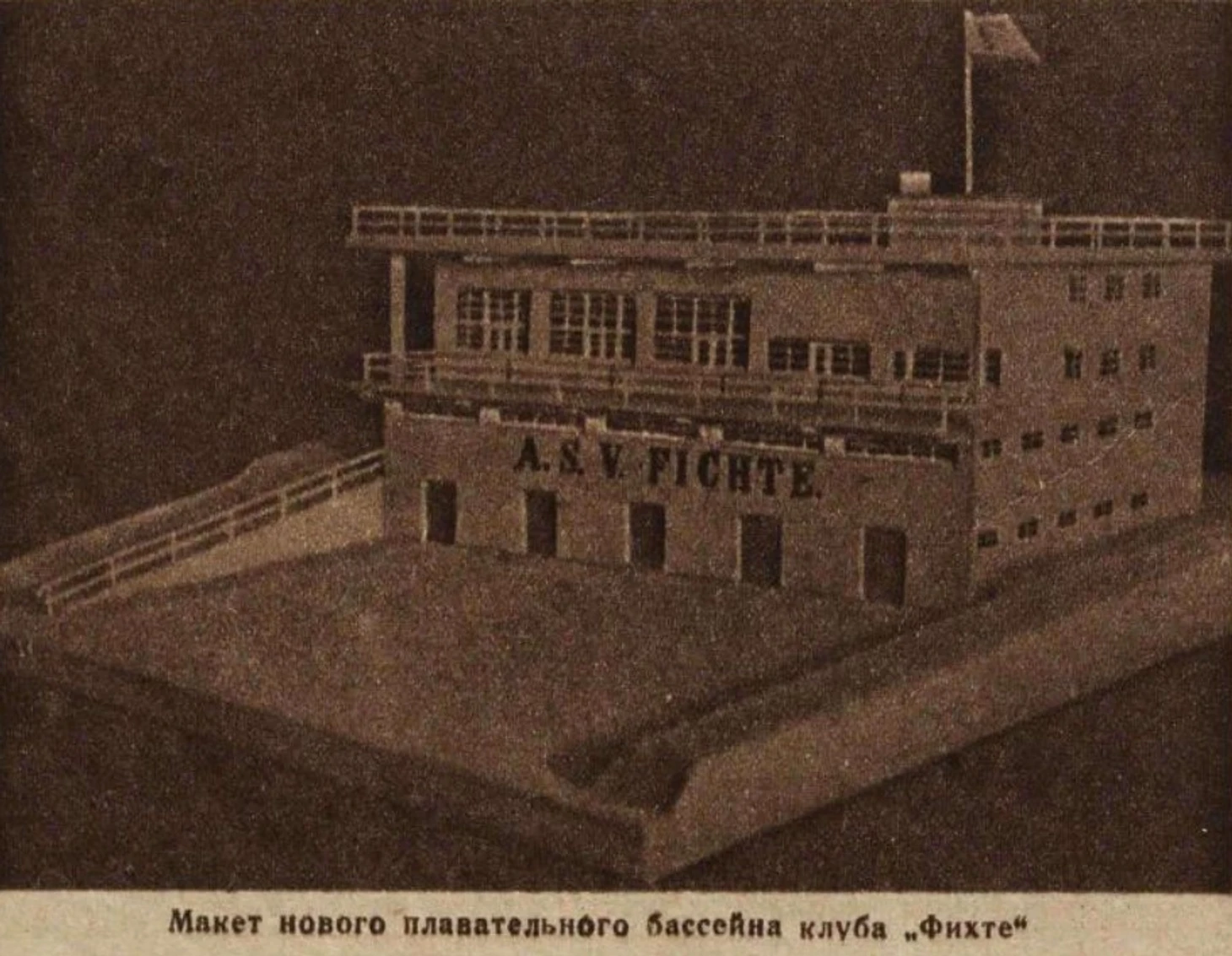 1931 год. Макет нового плавательного бассейна клуба «Фихте» (журнал «Физкультура и спорт» № 12 от 30 апреля 1931 года)