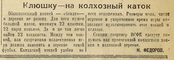 «Канадский хоккей удобен в колхозной деревне» (газета «Красный спорт» № 112 за 21 декабря 1935 года)