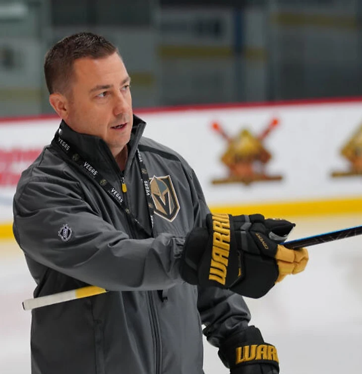 Миша Донсков – один из героев, работающих в «Вегасе» с момента его основания. За эти годы он сменил несколько должностей и поучаствовал в сборке и работе чемпионского состава: пришел в клуб в августе 2016 года на пост директора по хоккейным операциям, но уже больше трех сезонов входит в тренерский штаб.