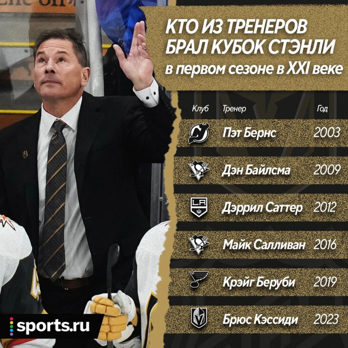 «Вегас» – обладатель Кубка Стэнли, и эта победа случилась в первый же сезон работы Брюса Кэссиди главным тренером. Он возглавил «рыцарей» всего через восемь дней после ухода из «Бостона» – и вывел команду на новую ступень.