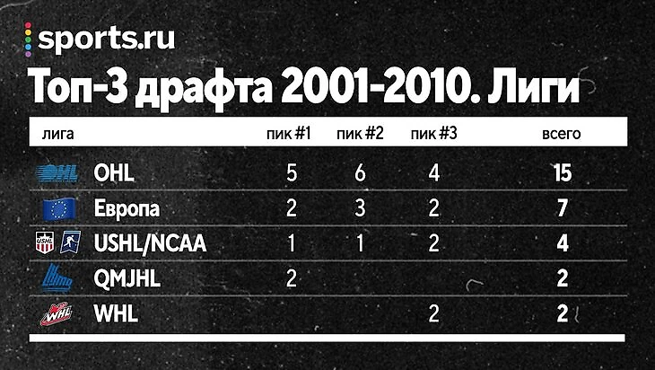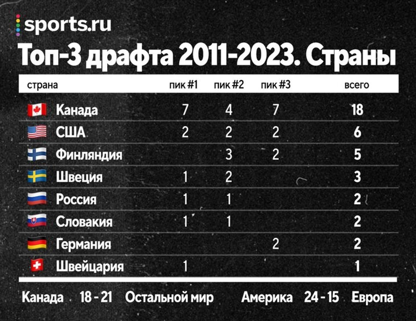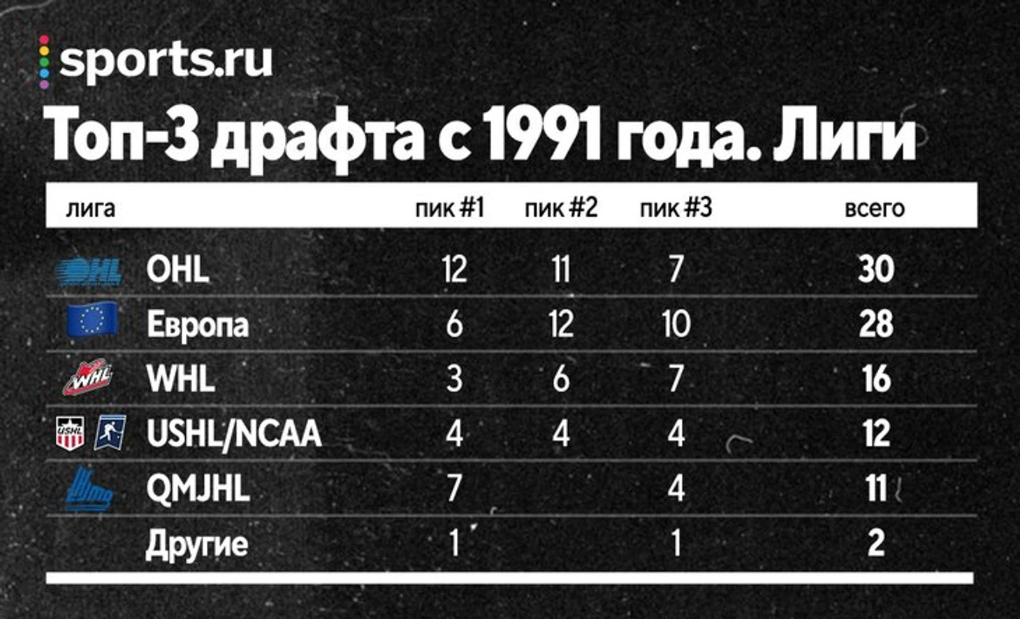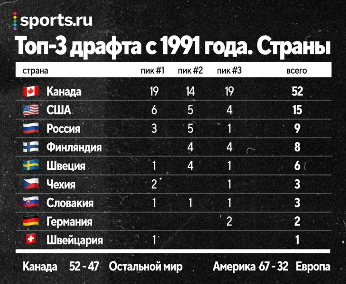 Кто и кого чаще выбирает в первой тройке драфта НХЛ? Гражданство, позиции, лиги, клубы