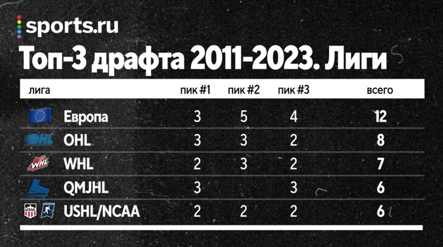 В первой тройке драфта НХЛ-2023 были выбраны два канадца и швед, все – центрфорварды, последний сезон провели, соответственно, в WHL, шведской Элитсериен и NCAA. И мы решили посмотреть, а кого вообще чаще выбирают в первой тройке? Центров или вингеров? Канадцев или европейцев? Из какой лиги?