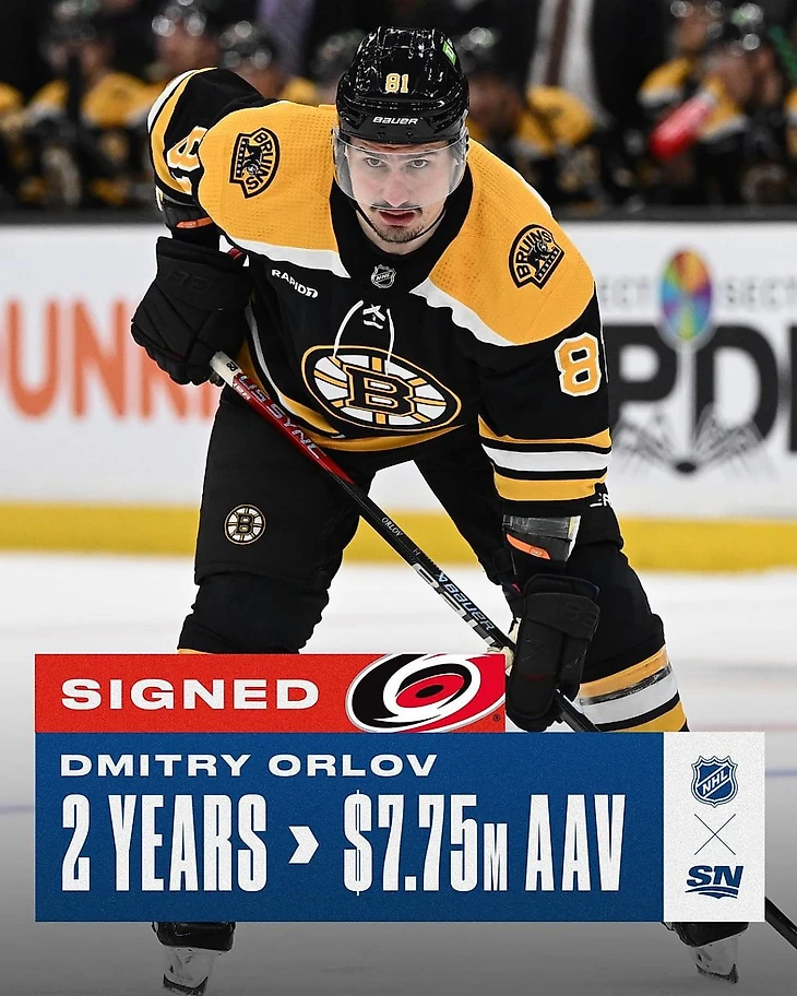 Среди слухов про возвращение в Вашингтон или продления контракта с Бостоном, Орлов выбрал очень выгодное предложение от Каролины. Возможно Каролина где-то даже переплатила за 31-летнего защитника, несмотря на то, что Дмитрий хоть и показал себя очень хорошо в Бостоне, но цифра в 7,75 кажется переплатой. Теперь Орлов самый высокооплачиваемый защитник Ураганов, и с таким усилением их защита кажется одной из самых сильных в лиге. Орлов, Слэйвин, опытный Бернс, Пеше, Шей все это защитники Каролины с контрактами от 4 млн.
