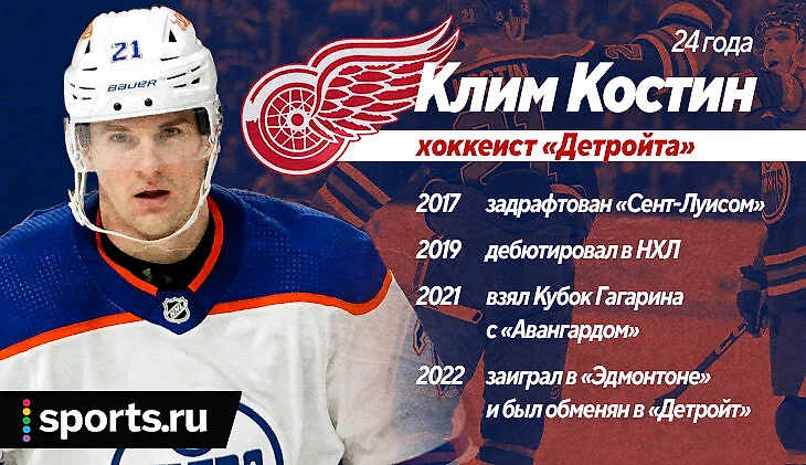 Климу Костину 24 года, и он готовится к игре уже за третий клуб НХЛ: провел два сезона в «Сент-Луисе», год в «Эдмонтоне» (между этим выиграл с «Авангардом» Кубок Гагарина), а этим летом после обмена подписал двухлетний контракт с «Детройтом».