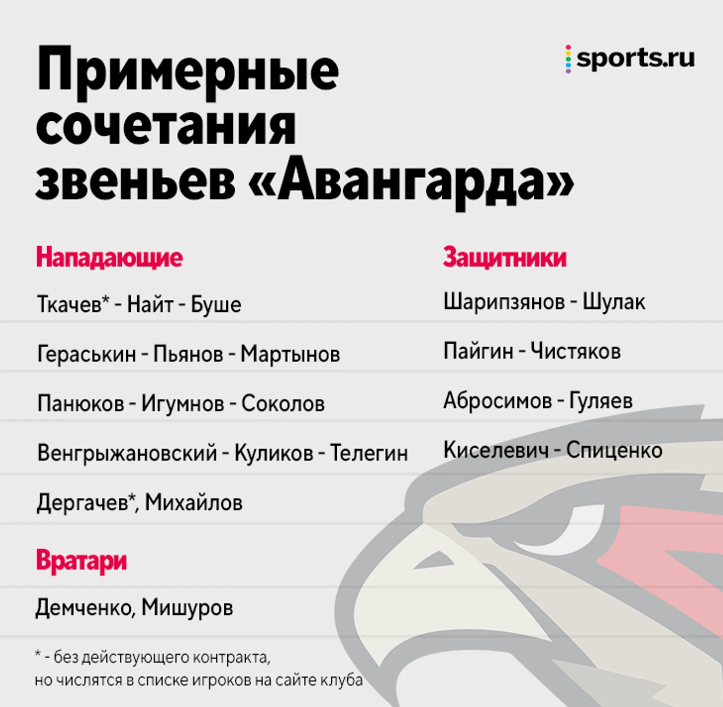 У «Авангарда» еще есть время исправить ситуацию, но для этого нужны очень решительные действия со стороны Курьянова. Во-первых, обязательно нужно продлить Владимира Ткачева, который пока смотрит в сторону НХЛ. Но там большинство команд уже укомплектованы, и реальных вариантов на самом деле немного.