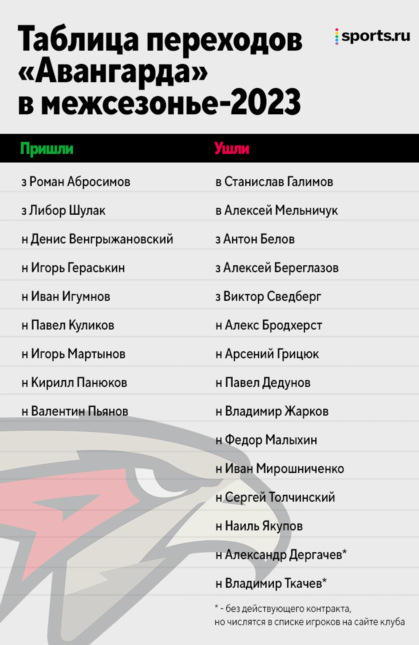 Клубы КХЛ потихоньку начинают выходить из отпуска, и не все подходят к предсезонке в идеальном составе. Год назад «Авангард» был второй силой на Востоке после «Ак Барса» – даже если это так и осталось, разрыв между Казанью и Омском только увеличится.