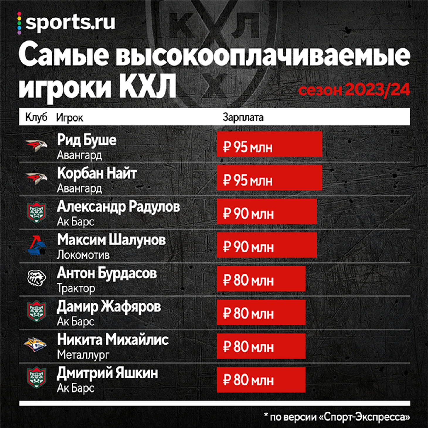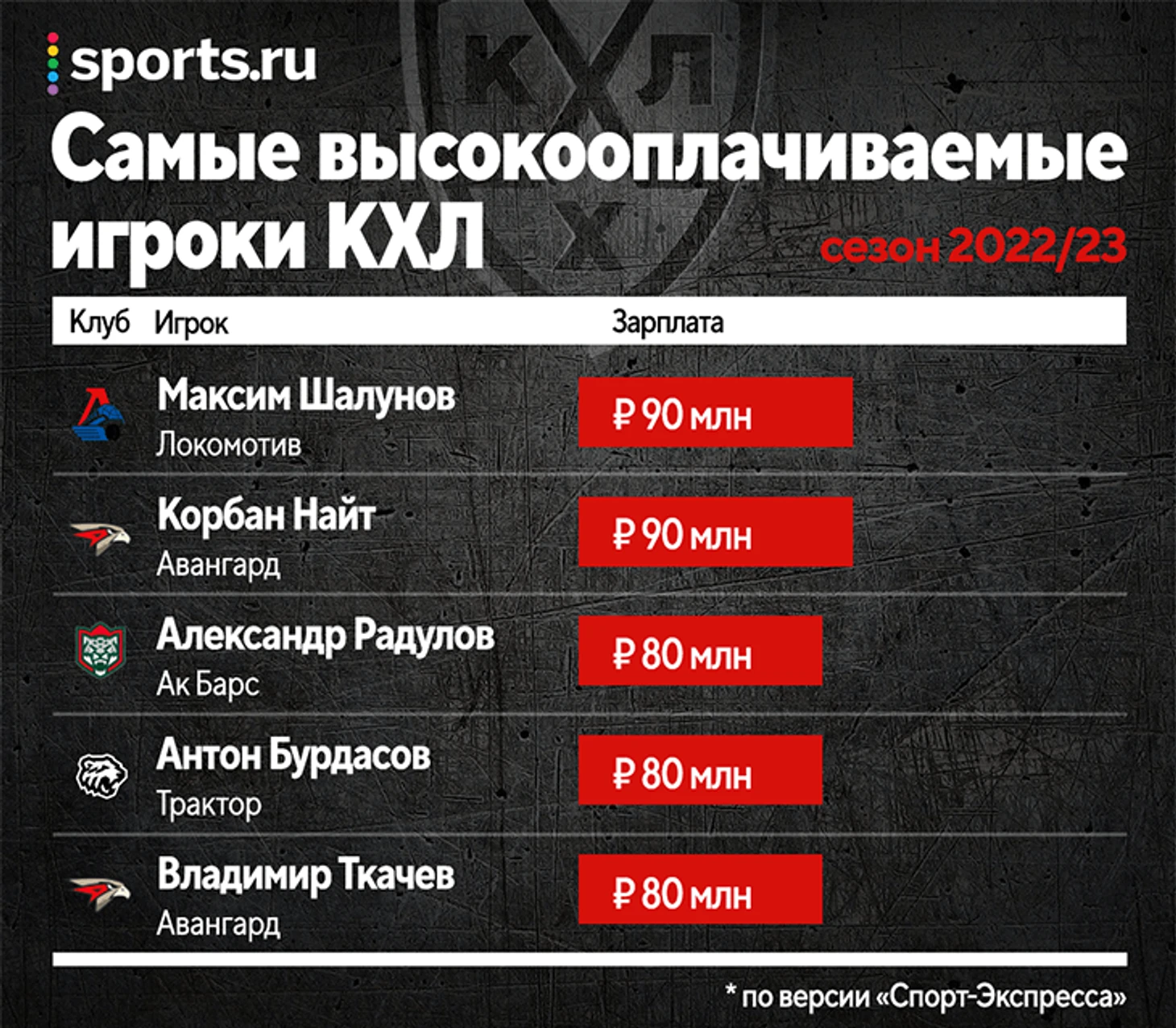 Также нужно учитывать, что этот топ еще может измениться. Если Владимир Ткачев останется в «Авангарде», то его контракт почти наверняка будет выше 80 млн (а, скорее всего, ворвется на первое место списка). Плюс еще с Найтом какая-то непонятная движуха – то ли уедет, то ли не уедет.