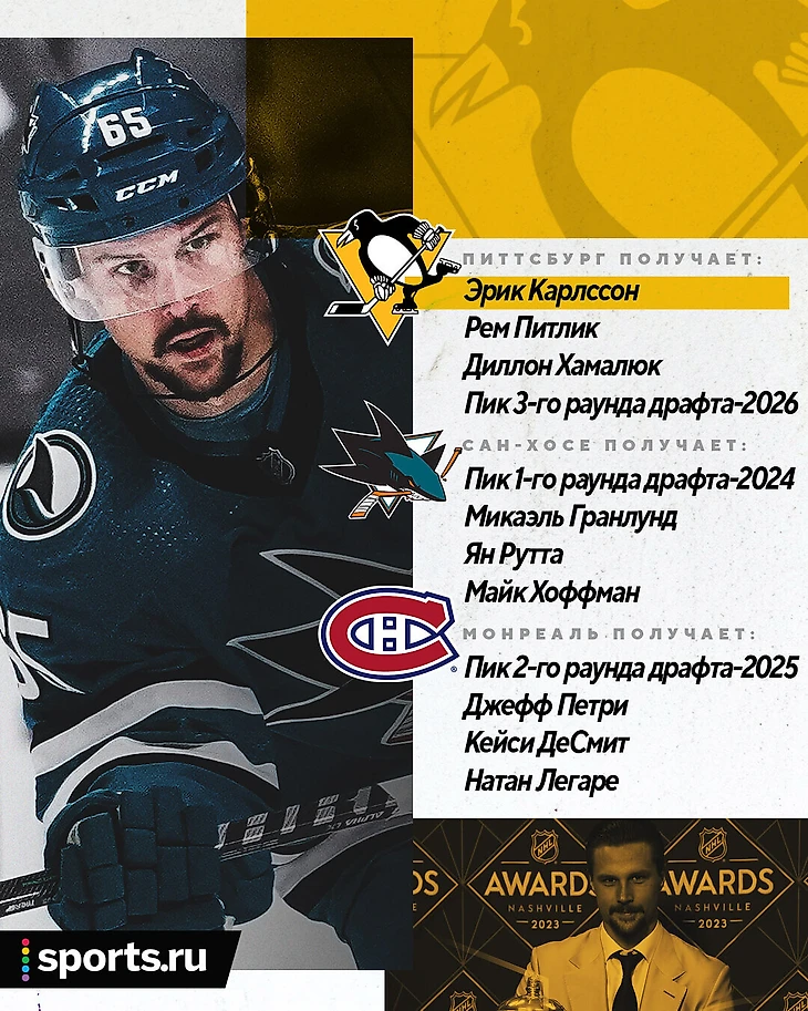 То есть: «Питтсбург» получает мечту, «Сан-Хосе» за умеренное вознаграждение отпускает свою (ну, в каком-то смысле) легенду попытать кубкового счастья в каком-то более жирном месте.