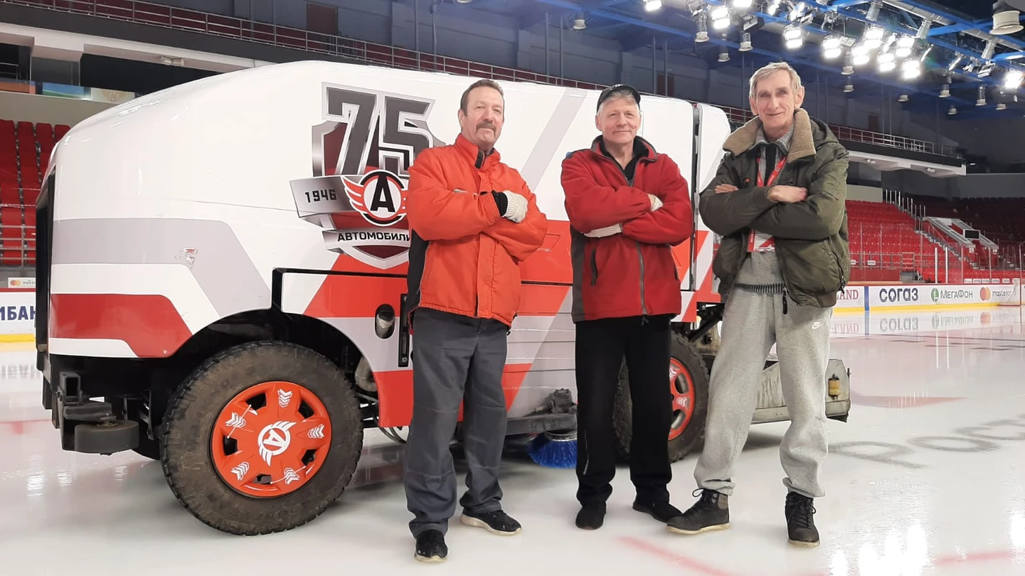 - На данный момент у нас четыре ледовара - это комбайнёры, а также четыре подсобных рабочих. От них зависит подготовка льда к игре. Они делают полную вырезку льда перед игрой: заливают из шланга и выравнивают лёд, то, что комбайном просто так не выровнять, потому что всё равно где-то есть ямы. Комбайн всё идеально выровнять не может, и тогда идёт наращивание льда из шланга, чтобы лёд принял ровную поверхность. Это ремонт льда. Так мы готовим лёд в ночь к игре, чтобы он был идеально-идеально ровный. А во время игры получается другая ситуация. Комбайнер должен следить за тем, сколько вырезать, сколько воды налить.