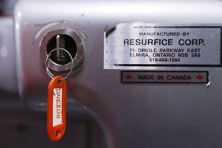 - У нас «Шевроле Олимпия Миллениум». На данный момент «Олимпия» признана более усовершенствованной, потому что она напичкана электроникой. Она не только режет или заливает лёд, у нее еще есть вариант - мыть лёд. Заливается холодная вода в специальный отдельный бак и можно просто не заморачиваться. Прошло какое-то мероприятие, где постелили ковер на лёд. На льду остался ворс, чтобы не подготавливать весь лёд, на комбайне выезжают и делают промывку.