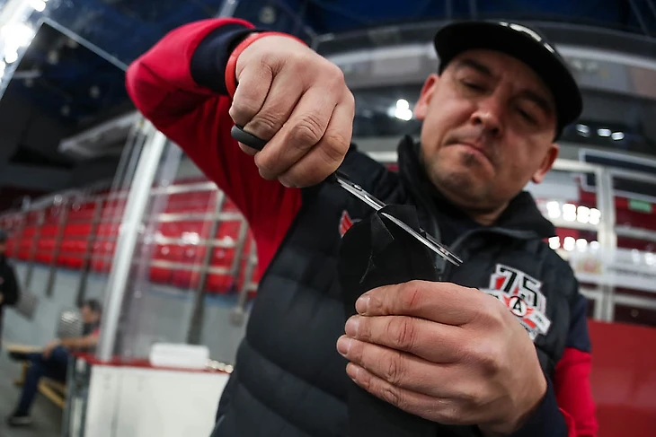 - Хоккей контактный вид спорта, поэтому поломка может произойти и во время матча. Инструмент у нас всегда с собой. Всё оборудование, запасные стаканы (держатель, в котором крепится лезвие конька – прим. ред.) и лезвия на выезд мы возим с собой, чтобы быть автономными. Если из-за какой-то микрополомки мы потеряем игрока, и он не выйдет на площадку – это не уровень Континентальной хоккейной лиги. Такой случай был у Виталика Попова, когда мы играли в Нур-Султане с «Барысом» несколько лет назад. В конёк попала шайба и сломала стакан (держатель лезвий на коньке). Был очень напряжённый матч. Я увёл его в раздевалку, расклепал конёк, поставил новый стакан, установил лезвие. Через 6 минут у меня хоккеист вышел и закончил период.