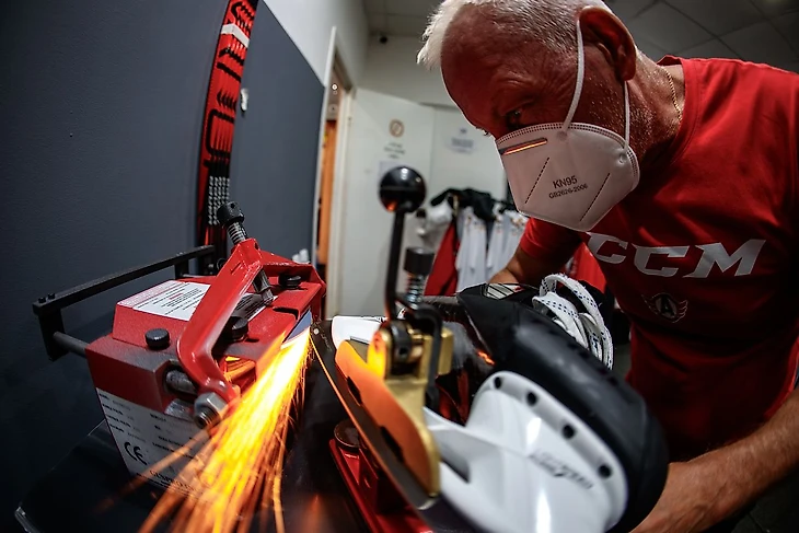 - Мы разделили обязанности, чтобы друг другу не мешать и чётко выполнять свои задачи. Я занимаюсь ремонтом формы, ремонтом амуниции, сопровождением матчей. Николай Вениаминович занимается коньками, заточкой и всем, что связано с этим. Каждый знает свои задачи. Для правильной организации труда нужен порядок. Вот у нас он присутствует. От этого комфортно и ребятам. Они знают, чего от кого ждать и с чем к кому обратиться.