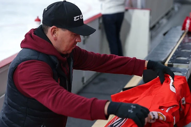 - Мы напрямую взаимодействуем с хоккеистами. Работа сервисмена изначально подразумевает это в себе. Наша задача сделать комфортным времяпровождение хоккеистов во время тренировочного процесса и во время игры. При этом вне игры и вне тренировок хоккеисты обычные люди у них часто бывают свои проблемы, насчёт которых мы можем поделиться своим мнением. Вне льда мы обычные друзья, которые могут друг другу помочь, посоветовать что-то, даже в каких-то бытовых моментах. Бывает, что где-то что-то сломалось, например, детская коляска, и, вместо того чтобы обращаться в сервис или ремонт, они привозят нам. Мы помогаем починить, потому что крайне мало времени между тренировками и играми, чтобы искать эту помощь на стороне. Взаимодействие стопроцентное, как на скамейке, в раздевалке, так и вне.