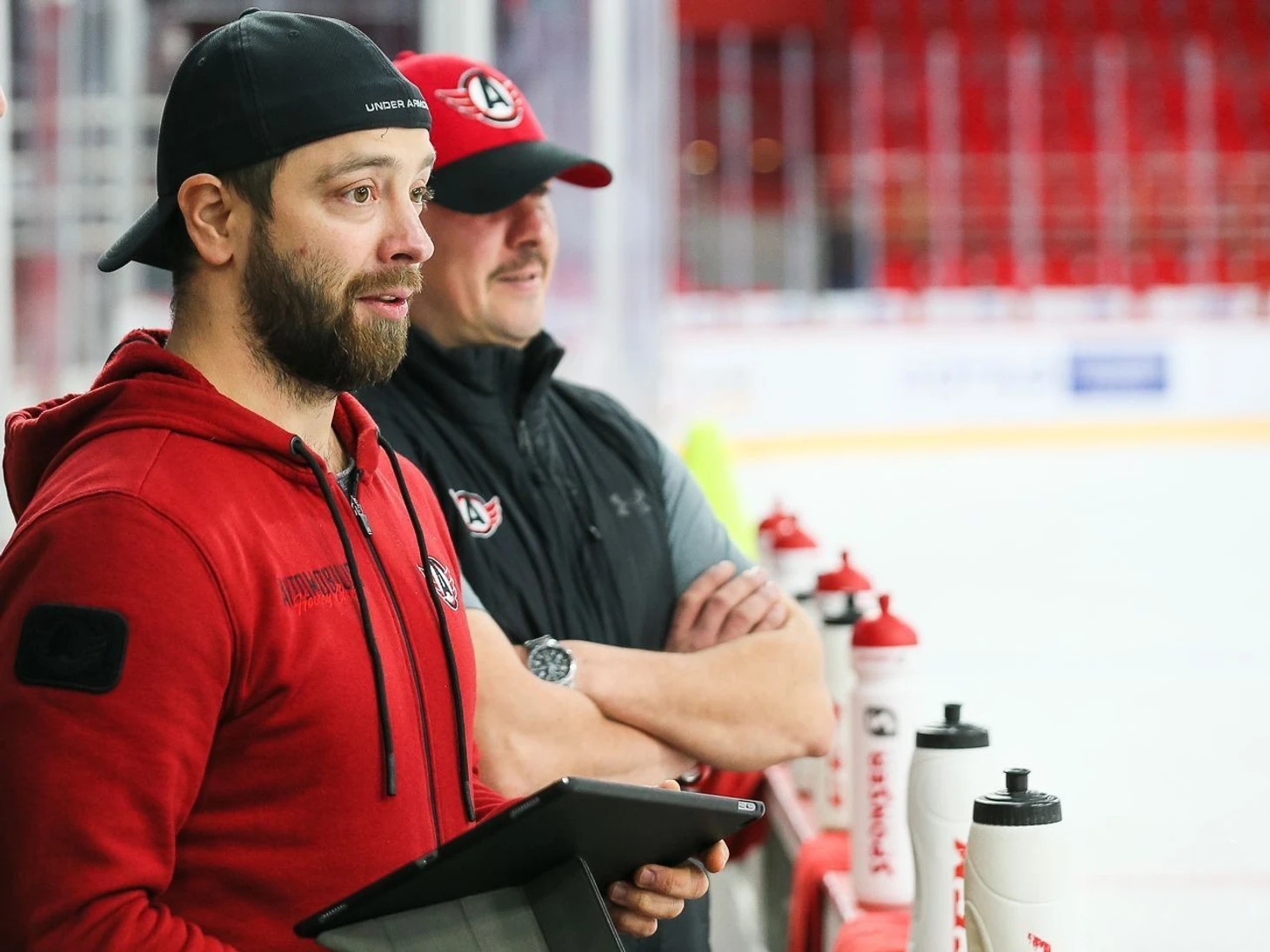 - Во время тренировок на льду помогаете как-то?