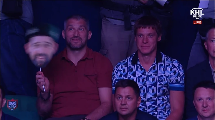 Овечкину очень зашла картонная голова Зарипова – во время официальной церемонии он не выпускал ее из рук.