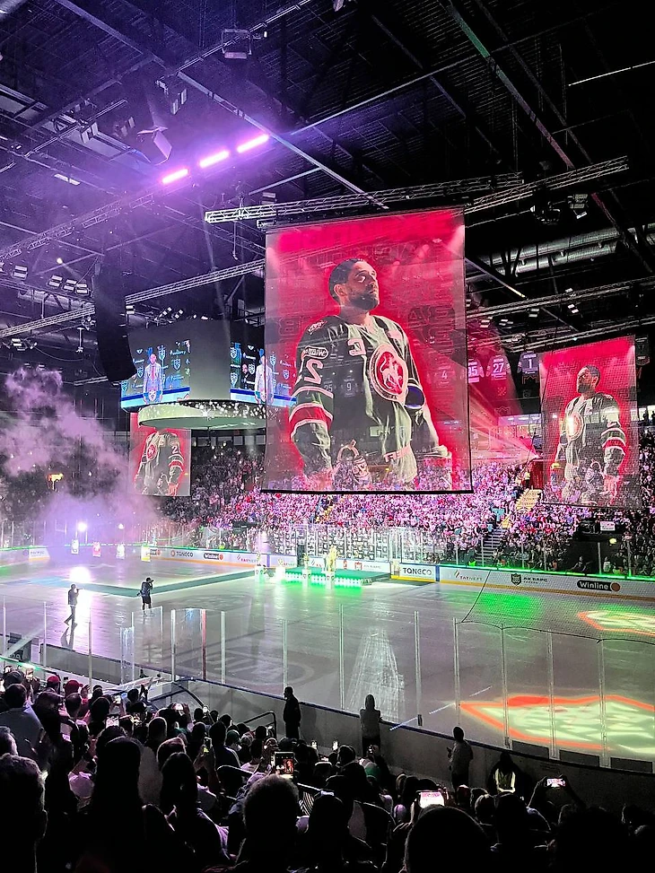 Организаторы решили, что Зарипова не может быть много, а потому до начала церемонии лицо нападающего смотрело с каждого места на арене.