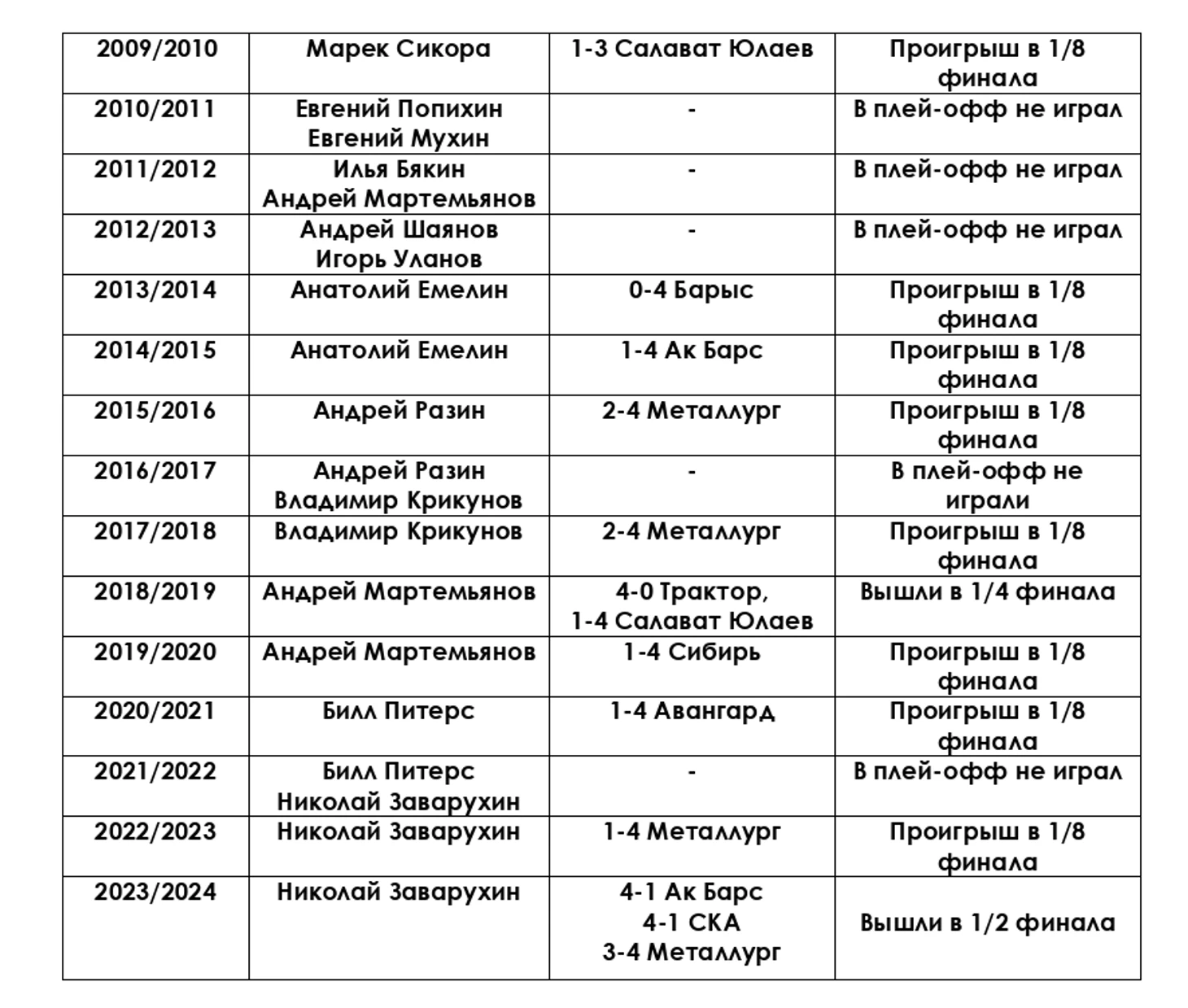 Андрей Мартемьянов был готов продолжать работу, однако у клуба сменилось руководство, а прежние договорённости перестали иметь силу. В конце сезона покинула команду ударная тройка – Денис Абдуллин, Николай Бушуев, Андрей Субботин. Ушёл любимец публики голкипер Иван Лисутин. Не стал подписывать новое соглашение о сотрудничестве подающий надежды молодой игрок Филипп Савченко, который ярко выступал на молодёжном уровне.