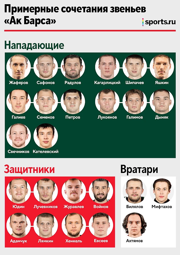 Мы прикинули состав «Ак Барса» на фоне того, что увидели на предсезонке, и на фоне своих ожиданий. Понятно, что Свечников не будет в запасе – он может спокойно сыграть на месте Петрова в третьей тройке или заменить того же Жафярова и выйти в связке с Сафоновым и Радуловым. Тем более, в прошлом сезоне на этом месте играл габаритный Воронков, а Свечников-старший вполне похож по антропометрии на Дмитрия.
