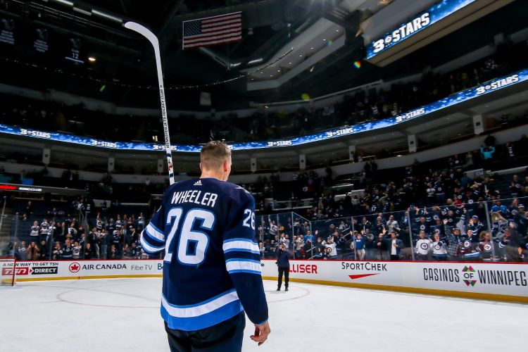 После смены командой прописки он стал играть все более важную роль как в результатах «Виннипега», так и в общественной жизни города. Руководство команды стало рассматривать его не только как главного поставщика очков на льду, но еще и как важный маркетинговый актив, не жалея усилий по раскрутке Уилера до статуса звезды хотя бы локального масштаба. Я на каждом углу трубил о том, что звено Лэдд-Литтл-Уилер самая недооценённая тройка в НХЛ, а Блэйк Уилер – теневая суперзвезда о которой никто не говорит. Последующие годы показали, что я был прав.