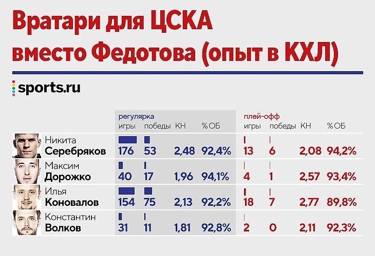 Без Федотова у ЦСКА неплохая бригада вратарей… для условного «Витязя». Первый номер Александр Шарыченков – вратарь опытный, но этот статус вывозил только в «Югре» (давным-давно) и на короткой дистанции в «Салавате». Армейцы уже пробовали играть с Шарыченковым в роли первого номера – примерно три месяца в сезоне-2020/21 (Ларс Юханссон был травмирован, а потом какое-то время набирал форму) – получилось так себе, ЦСКА многовато проигрывал и пропускал. А Шарыченков по итогам того сезона занял место в конце третьего десятка по проценту отраженных бросков (Юханссон – третье). Это не помешало армейцам выиграть конференцию, но в плей-офф они пошли уже со шведом.