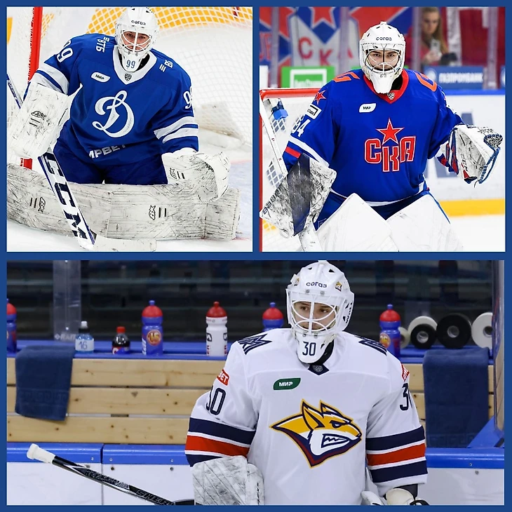 Три основных претендента среди стражей ворот – динамовец Моторыгин, армеец Иванов и магнитогорец Набоков. Пойдём по порядку. Максим, как казалось до предсезонки, был взят «динамовцами» как третья опция на случай травмы кого-то из тандема Коновалов – Волков или как вратарь на будущее после окончания контрактов основных голкиперов. Однако Моторыгин так сыграл на предсезонке, что, похоже, вытеснил Волкова и, вероятно, стал вторым вратарём «динамовцев» (Коновалов так вошёл в сезон, что его вытеснить будет практически нереально). На данный момент он провёл две игры: шикарную с «Амуром», но слабую с «Металлургом». Тем не менее, нет сомнений, что он ещё получит шансы и может вклиниться в борьбу за приз. Иванов из СКА похоже так же вытеснил бэкапа своей команды, переиграв на предсезонке Дмитрия Николаева. Он тоже вряд ли станет основным при здоровом Маттссоне, но если будет играть так, как с «Ладой» (напомню, тольяттинцев Иванов засушил), может претендовать на трофей. У Набокова ситуация другая: из-за подписания Судницина и предсезонки, где Илья почти не играл, казалось, что он осядет в ВХЛ, однако неожиданно Набоков вышел в воротах против «Витязя» и принёс команде победу, что позволяет надеяться на то, что молодой голкипер получит больше шансов в основе «Металлурга». Есть и другие молодые вратари с большими перспективами, но они пока не провели ни единого матча в этом сезоне и кажутся очевидными третьими номерами – в первую очередь это Семён Вязовой из «Салавата» и Сергей Мурашов из «Локомотива».