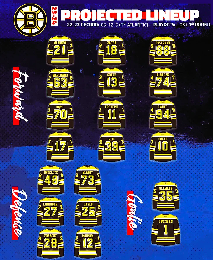 📌 Изменения за лето: значительные – завершившие карьеру Бержерон и Крейчи, прощание с «лучшим ростером в лиге» и весьма сомнительные подписания на замену