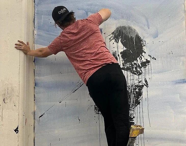 Творческая натура Джейкоба Трубы не признает использование кисти. Вместо этого его инструментом, как и на льду, является все его тело.