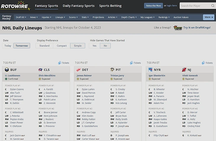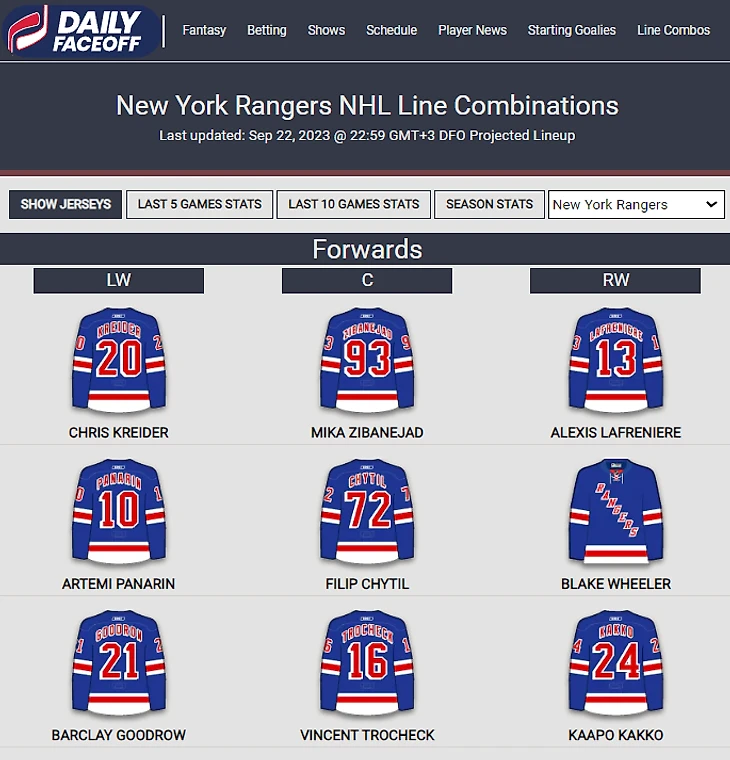 Узнать и запомнить актуальные составы команд можно на Daily Faceoff.