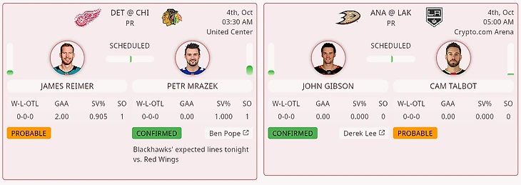 Календарь вратарей есть на RotoWire.